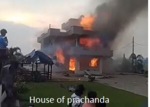 अध्यक्ष पुष्पकमल दाहाल प्रचण्डको खुमलटारस्थित निवास, चार वटा गाडी पूर्णरुपमा खरानी भएको उपाध्यक्ष एवं प्रवक्ता अग्नि सापकोटाले बताए। २२ जना नेताको घर पूर्ण रुपमा क्षतिग्रस्त भएको विवरण आए पनि देशभर निकै ठूलो संख्यामा आगजनी र भौतिक क्षति भएको उनले बताए।