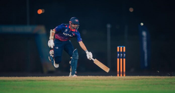 नेपालका लागि कप्तान रोहित पौडेलले ४१ बलमा ५८ रनको पारी खेले। त्यसैगरी दीपेन्द्र सिंह ऐरीले २२ बलमा २६ रन र गुल्सन झाले ८ बलमा १६ रनको योगदान गरे।